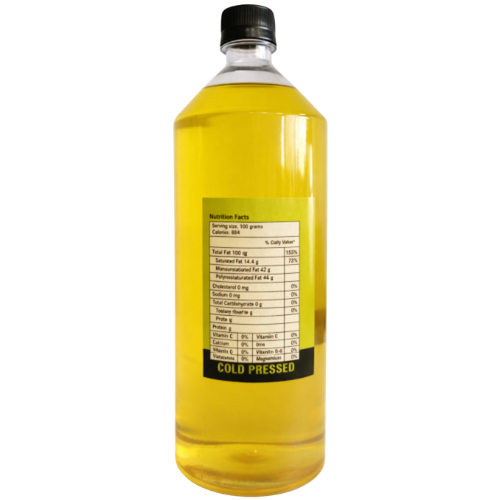 Unlike refined oils, this cold pressed oil is unprocessed and free from chemical additives, preserving its natural purity and nutritional value. Its high smoke point makes it ideal for deep frying, sautéing, and everyday cooking.